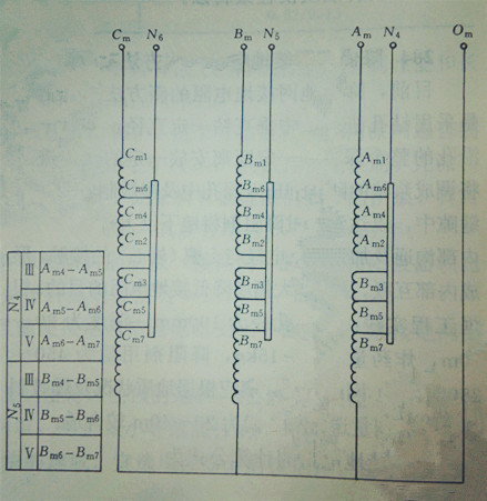 圖2-137 分接開關(guān)檔位及中壓繞組接線原理圖